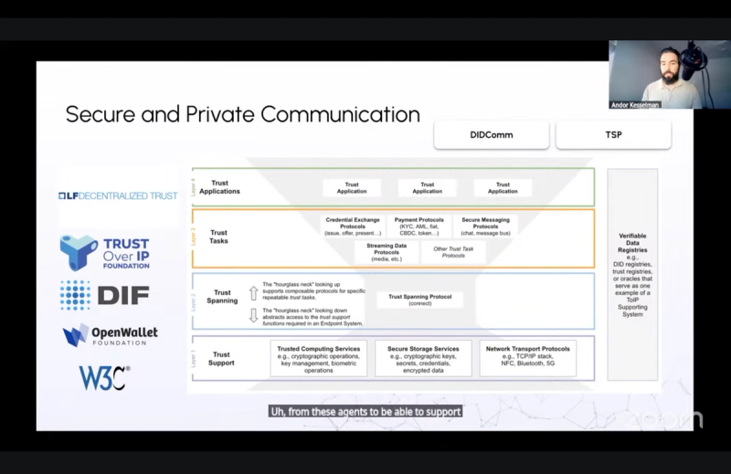 Andor Kesselman chairs the Technical Steering Committee at DIF and leads multiple foundational working groups focused on trusted AI agents, decentralized web nodes, and trust registries.